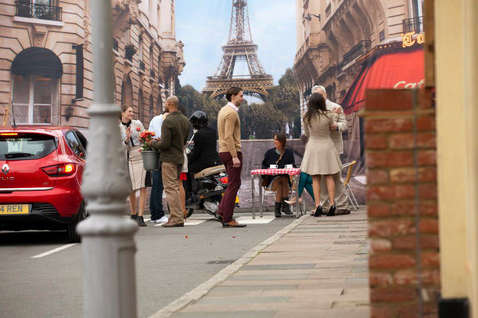 When le ‘Va Va Voom’ button is pressed the Clio’s occupants are transported from their South London street to a bustling Parisian suburb, complete with French music, fresh baguettes and the romantic scene of a kissing couple.