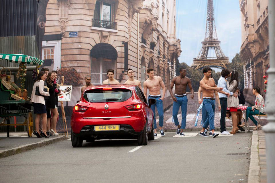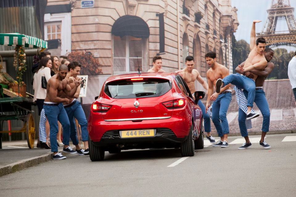 Then the scene gets surreal – depending on which video is being played the street is suddenly filled with either scantily-clad female dancers or their male counterparts – either way the test-drive delivers that authentic Va Va Voom feeling, before quietly transforming back as the driver returns to the Renault showroom.