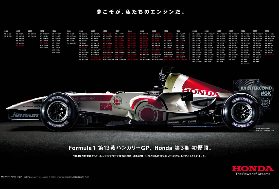 Left: Jenson Button’s Hungarian GP winning Honda RA106. Right: Honda 006 and RA271 photographed for Honda’s 40th anniversary of F1 racing in 2004.