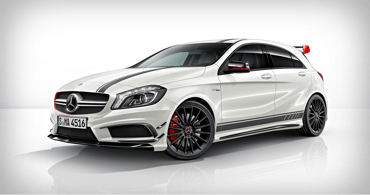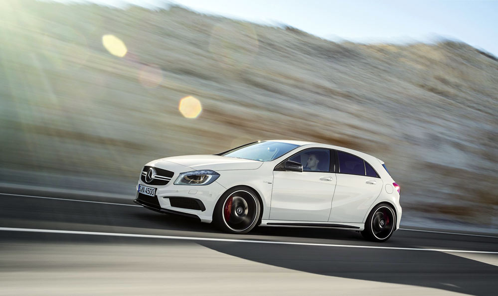 The A45 AMG’s engine revs to 6,700 rpm and accelerates from zero to 62 mph in 4.6 seconds. Top speed is an electronically limited 155mph and thanks to AMG’s 4MATIC all-wheel system, its driver can unleash its performance in almost any weather condition.