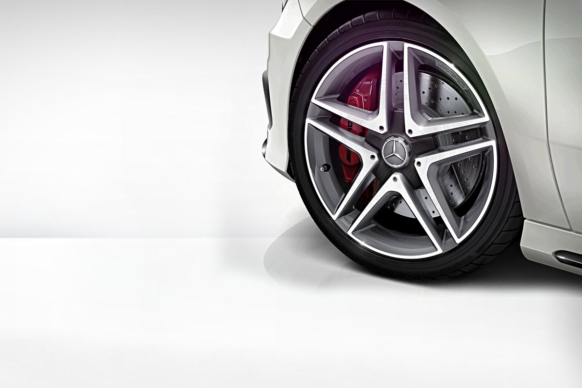 - AMG multi-spoke light-alloy wheels fitted with 235/35 R 19 tyres, in two variants: painted in titanium grey with high-sheen finish or in matt black (235/40 R 18 tyres are standard)