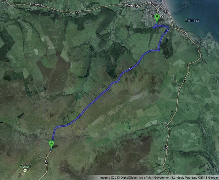 He reached the outskirts of Ramsey in just 7m32s while travelling at an average speed of 40mph (64km/h), along the way he achieved a top speed of 63mph (101km/h).