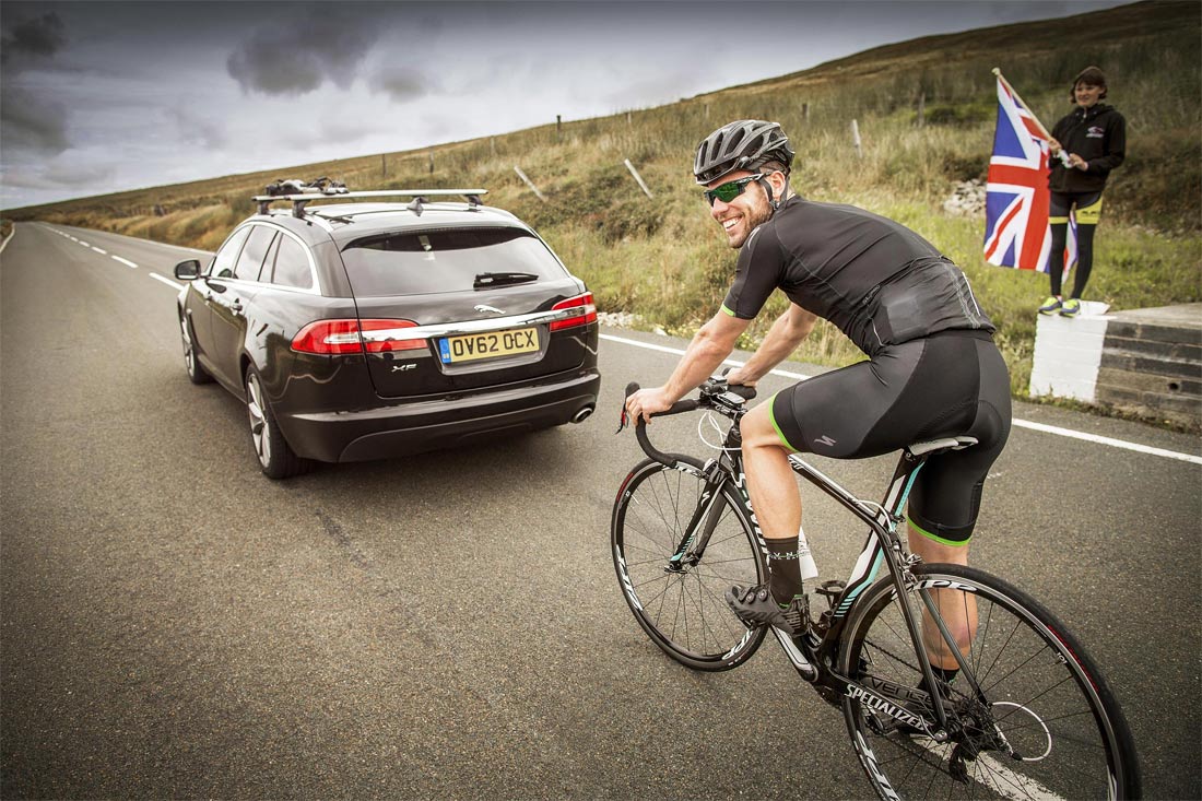 In a film produced with Jaguar Academy of Sport, Cavendish sets out to see just how fast he can travel the 8km descent from Bungalow to Ramsey, timed by the accompanying Jaguar XF Sportbrake chase car.
