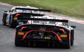 Both Collards and Martin have endured bruising touring car careers but have since found renewal behind the wheel of the V10 Huracan. All season long, their two cars have amassed an extraordinary collection of points and pots, arriving at Brands Hatch having won five of the eight rounds between them. Indeed, only at Silverstone did neither finish on the podium, the blue car’s race ending prematurely with a heavy crash into the Copse Corner barrier. It can’t be called a turning point as this was only race 3 of 9, but the points lost that day by Martin & Mitchell could not be recovered, leaving them facing help from the gods to overturn the deficit to the Collards.