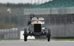 Changeable conditions are often a determining factor with ‘the Pom’, and as the pre-war machines were unleashed, the still-damp track proved just as much a hamper to pace as the tolerance of strained pistons and chains. Nevertheless, there was much to be admired: Tony Lees’ 1913, near-12-litre Vauxhall Viper gave its all in pursuit of a squadron of Frazer Nash Super Sports’, whilst the sight of Luke Roberts sitting aloft his 1906 Bianchi, perched on a leather-buttoned seat, drew gasps. Lukas Halusa’s 1927 Bugatti Type 35C sped to the fastest lap in group (just as it had in so many grand prixs nearly a century before), but it was Hunt, who had been supreme in the tests, who then exceeded his required number of laps by three to position himself as the driver to beat.