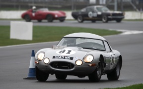 The second group was more about style than substance, though Geraint Owen’s TR4 was in blistering form. Not quite so racy was Nicholas Topliss’ newly finished Bristol Zagato, nevertheless, its beauty and brilliance shone and was thoroughly deserving of its praise. But it was the group 3 encounters that the packed BRDC grandstand had most eagerly awaited. Leading the procession was Alex Ames in the Martin Stretton-prepared BMW CSL. All hopes of a mighty duel with Patrick Blakeney-Edwards in his Jägermeistered-car soon faded along with the orange BMW’s unwillingness to participate. This led Ames to push on out in front and alone, whilst further back, Martin Short (Yaris GR) and David Smitheram (Corvette C6) scythed through the pack. At first, Ames’ choice of heavily treaded tyres worked well until unexpectedly, the tarmac dried and Smitheram found the pace to leave Short behind and close-in, only for the chequered flag to fall as he eyed his move.