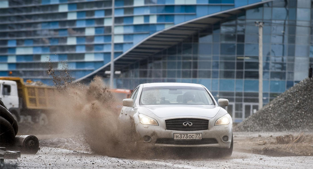 Sunday’s Bahrain GP winner, Sebastian Vettel, traded the sunny Middle East climate for a muddy building site in Russia as he became the first Formula One driver to experience the Sochi Olympic Park Circuit.