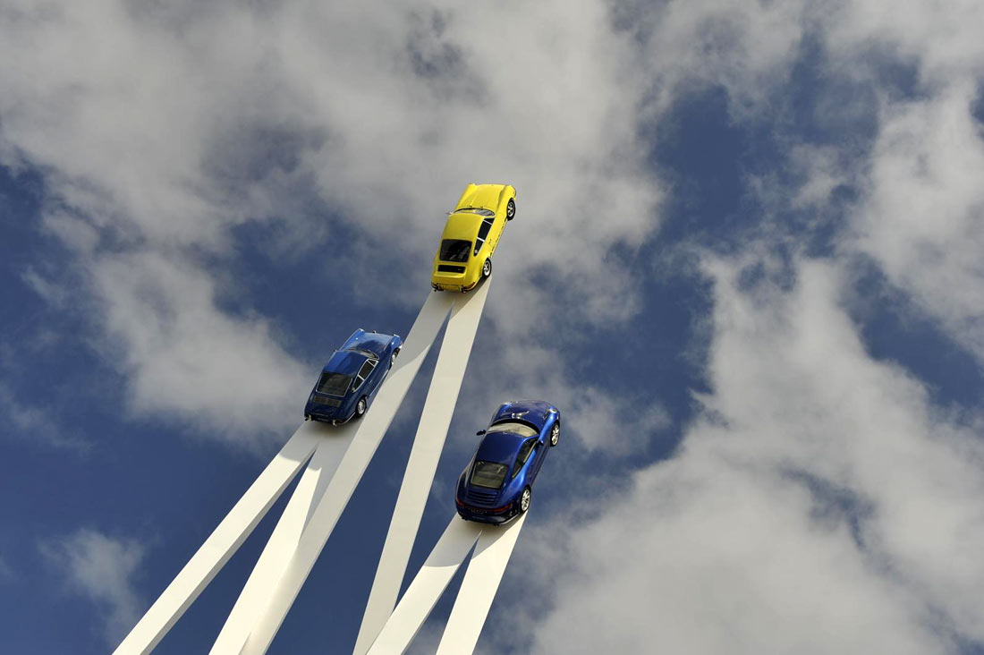 Most prominent reminder is from Porsche, which features in the ‘Central Sculpture’ outside Goodwood House. The display which contains an original 911, 1973 2.7 RS, and the latest Type 991 Carrera 4 shows the evolution of the iconic sports coupé and was designed by acclaimed artist and sculptor Gerry Judah (the man responsible for most of the previous displays).