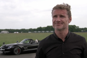 I can't decide what to be more impressed by, the predictable trajectory of golfer Jake Shepherd's swing, or former Formula 1 driver David Coulthard's ability to spot the ball while driving at 120 mph in the Mercedes-Benz SLS AMG Roadster.